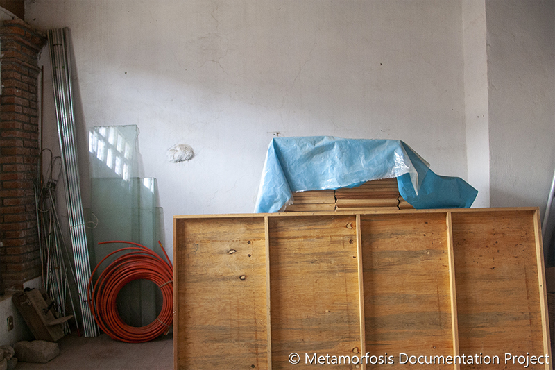 In the second phase of this Project, we arrived in Teotitlán del Valle the 16th of May in 2008, and the 17th we went to work with the Museum Committee to habilitate a storage room and transform it into the Danza de la Pluma Exhibit.